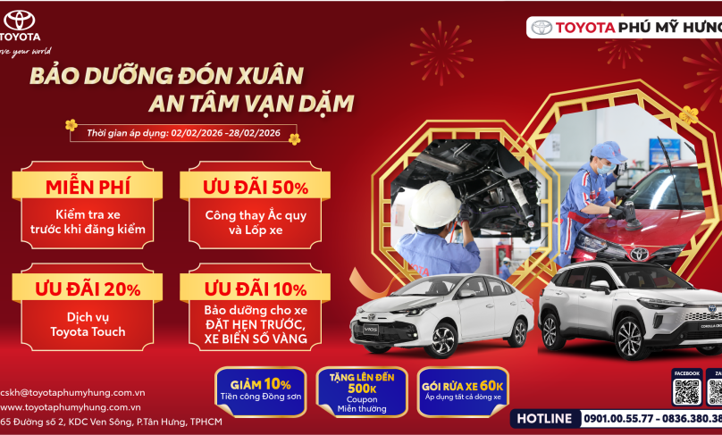 Chương trình ưu đãi bảo dưỡng xe Toyota đầu năm 2026 tại Toyota Phú Mỹ Hưng Tết đến xuân về là thời điểm xe vận hành nhiều hơn cho những chuyến đi xa, về quê sum họp hay du xuân đầu năm. Việc bảo dưỡng xe ô tô đầu năm không chỉ giúp xe hoạt […]