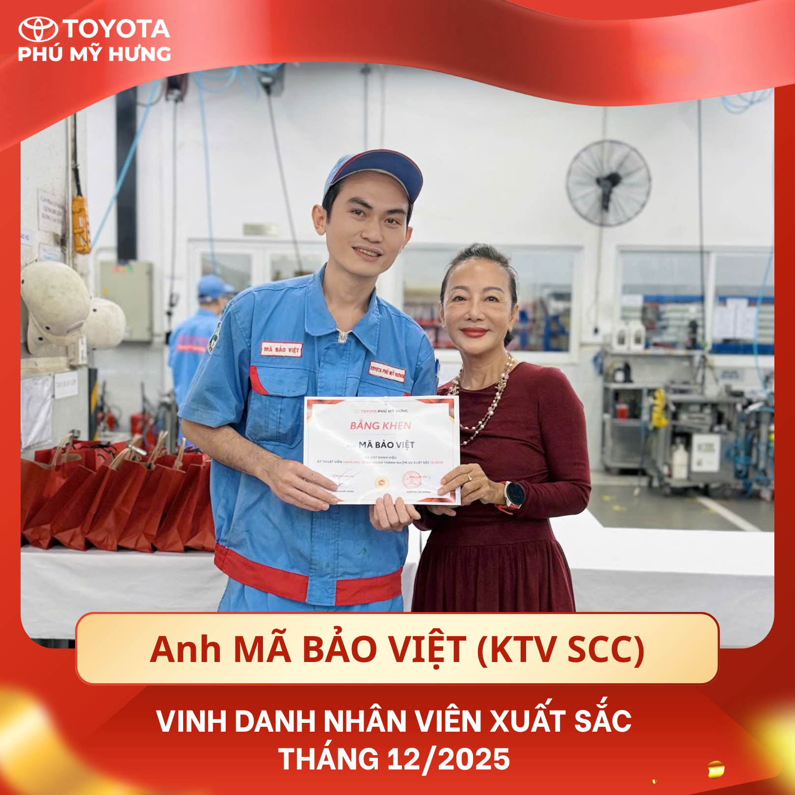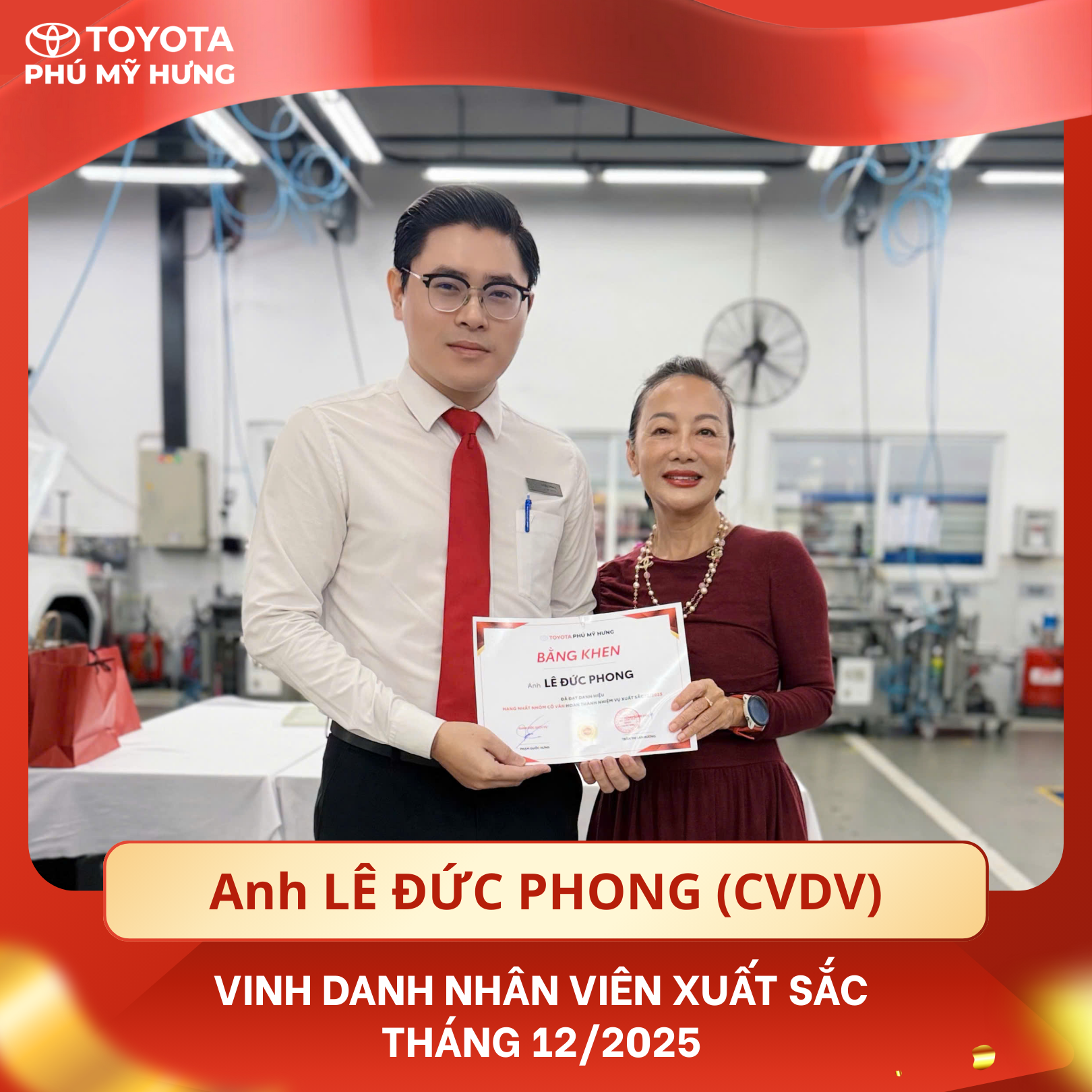 Tháng 12/2025 khép lại với nhiều dấu ấn đáng nhớ, không chỉ bởi nhịp độ làm việc cao điểm cuối năm mà còn bởi tinh thần trách nhiệm, sự tận tâm và nỗ lực không ngừng của toàn thể đội ngũ nhân sự tại Toyota Phú Mỹ Hưng. Đây là thời điểm đặc biệt để nhìn lại hành trình cống hiến của những cá nhân tiêu biểu – những người đã âm thầm tạo nên giá trị bền vững thông qua từng trải nghiệm phục vụ Khách hàng.